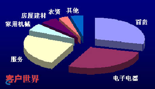 投诉问题按类别分:百货类占29.3%,家用电子电器类占28.0%,服务类占24.3%,家用机械类占5.5%,房屋及装修建材类占5.7%,农用生产资料类占2.9%,其他类占4.2%。(见表四、表五)