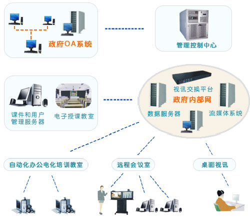 政府作为经济与社会发展的管理部门,经常需要召开各种会议,传达方针政策,布置工作,交流经验,因此视频会议系统需要能够支持召开跨地域的大规模会议,并拥有色彩饱满、清晰流畅的视音频及稳定不中断的保障。以前召开会议都得到指定会场集中,增加与会议人员的时间和车费,尤其地处偏远山区的政府开会,交通不便,与会人员奔波劳顿;会后的层层传达,不及时不准确,效率不高。一旦发生突发事件,因领导不能及时沟通、决策滞后而造成损失。要求通过视讯会议系统高清晰的视音频效果提高工作效率,节约会议经费。