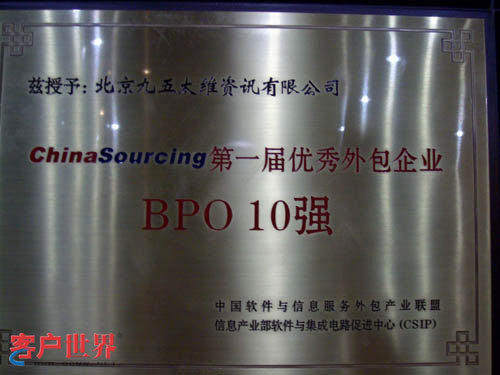 转载请注明来源:九五太维入选“中国BPO企业10强”