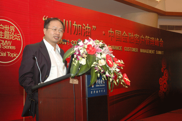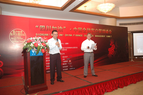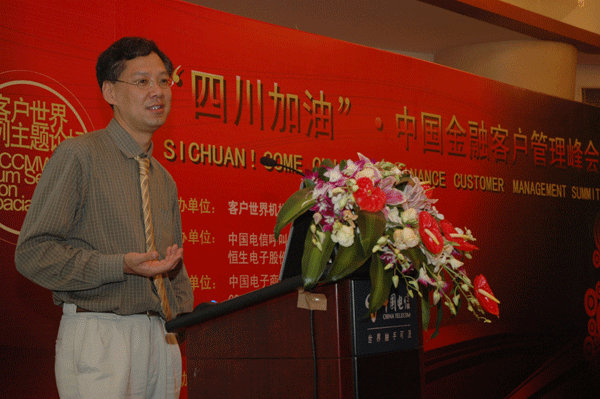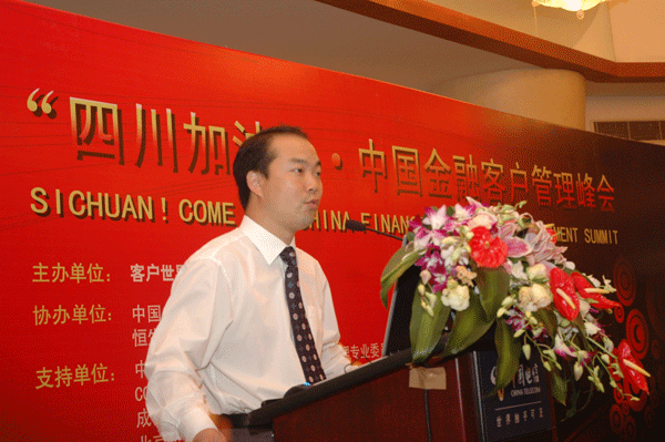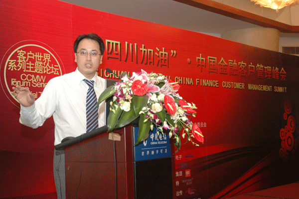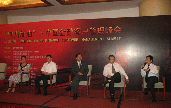 2008年7月18日,“客户世界系列主题论坛——中国金融客户管理峰会”在成都新国际会展中心隆重举行。本次会议关注混业经营下的金融客户价值提升,为震后恢复对四川服务外包业的信心而举办。会议云集国内顶尖金融机构的高层管理者以及世界领先的咨询机构的资深行业顾问,试图通过“思想家”和“实践者”的观点碰撞激发出产业发展的火花。以下是本次峰会部分相关图片集锦: