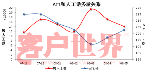 请再看月度ATT和日平均人工话务量的关联图:(图3)