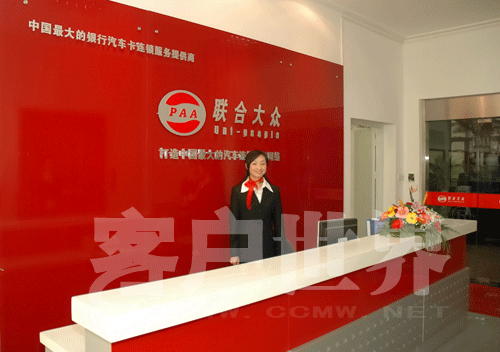 联合大众开发了一个庞大的汽车及车主的数据库中心,并通过区域合作、加盟、特约合作单位等形式,在我国19个省市区建立了近3000家终端网点,为车主提供车险的代理与理赔、汽车救援、汽车维修、汽车日常养护、车辆年检、汽车的运动文化推广等一站式服务。