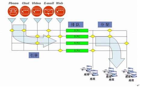 对于多种媒体采用统一的ACD处理方式,经过引导,进入不同的队列,分配到不同的坐席组。