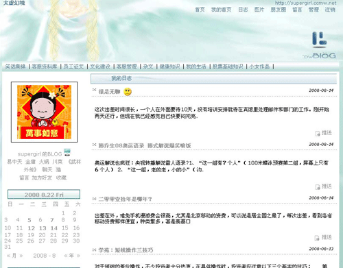2006年底开始她便开始在客户世界的博客上写文章,因为很想有个平台和众多人士分享和交流一些呼叫中心管理与技能方面的东西,通过了解,她获知客户世界是国内最专业的呼叫中心平台,不久便毅然决然的在客户世界开通了博客。