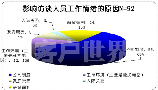 图二:某通信集团一家呼叫中心2008年员工访谈——影响员工情绪原因