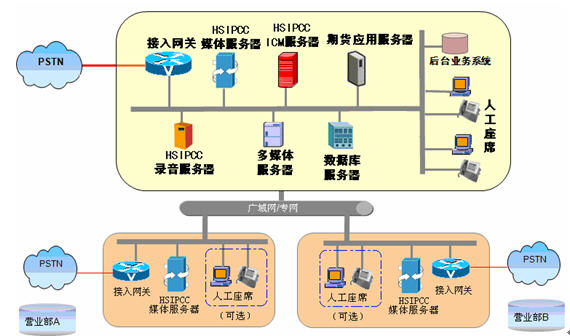 灵活性:支持人工坐席在总部和营业部分布部署,支持全网人工座席的集中管理,资源共享;