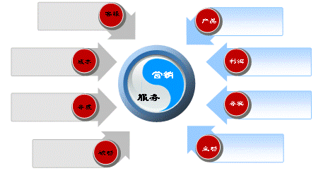 首先看一下服务营销的理念,有必要来温故一下。在传统的制造业中,即在工业经济的模式下,服务和营销是截然分割的,一般大家都认为,营销在前,服务在后。服务有几大特性,比如在购买了产品后才会有相关的服务,服务是无形的商品,企业建立的是售后服务体系。另外,大家都认为服务没有办法进行标准化,从这个角度说,大家一看到服务,就会联想:客服、成本、务虚、被动等词汇。服务体现的是一种理念,所以大家认为比较虚。说到服务是被动的,实际是与营销相比,营销是比较主动的。拿呼叫中心来说,客服人员坐在座位上,等待着客户打来电话,而不能对电话进行预测,下一个小时会有多少呼入电话产生、投诉的内容会有哪些、咨询业务量会有多大,这些谁也不能进行准确预测,所以说服务相对比较的被动。再说营销,大家谈营销时,能想到的词汇有:产品、利润、务实、主动。因为营销是与产品挂钩,营销又可以赚取利润。另外,之所以说营销是务实的,因为营销是有指标的,每个月要进行考核。同样如果从呼叫中心的角度谈电销,它是一种主动式的外呼。