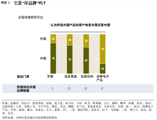 图表 3: 消费者将许多一流的跨国公司的品牌误认为是中国品牌。