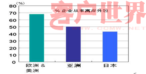 一项调查显示,欧美近70%企业从事离岸外包,亚洲将近50%企业从事离岸外包,尤其以日本为典型,将近45%的企业从事离岸外包。